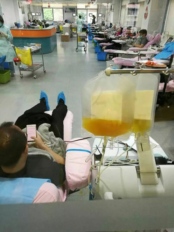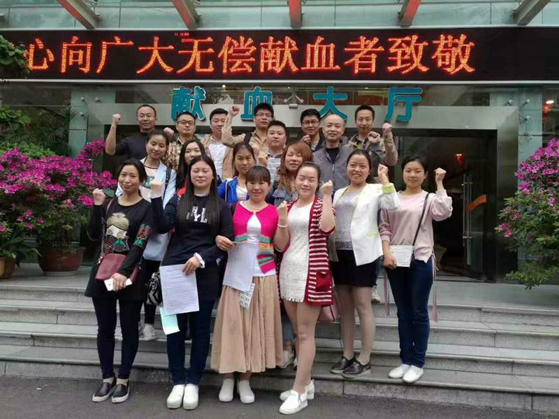 2017年4月18日四川泰華堂制藥有限公司老員工喬鐵鎖的愛人范安娜(廣漢市雒城鎮九小教師)突發重病,體內血小板急劇降低,生命垂危,被送至華西醫院搶救。急需血小板的消息在公司傳開后,在公司工會的組織下,公司職工不分男女、不分血型、不分老少,踴躍報名為她捐獻血小板。由于血小板的提取對身體狀況要求非常嚴格,經初步篩選,4月20日,18位基本符合要求的同志一大早就來到成都市血液中心抽血化驗做最后的檢查,最終有5位同志共捐獻了六個治療量的血小板。